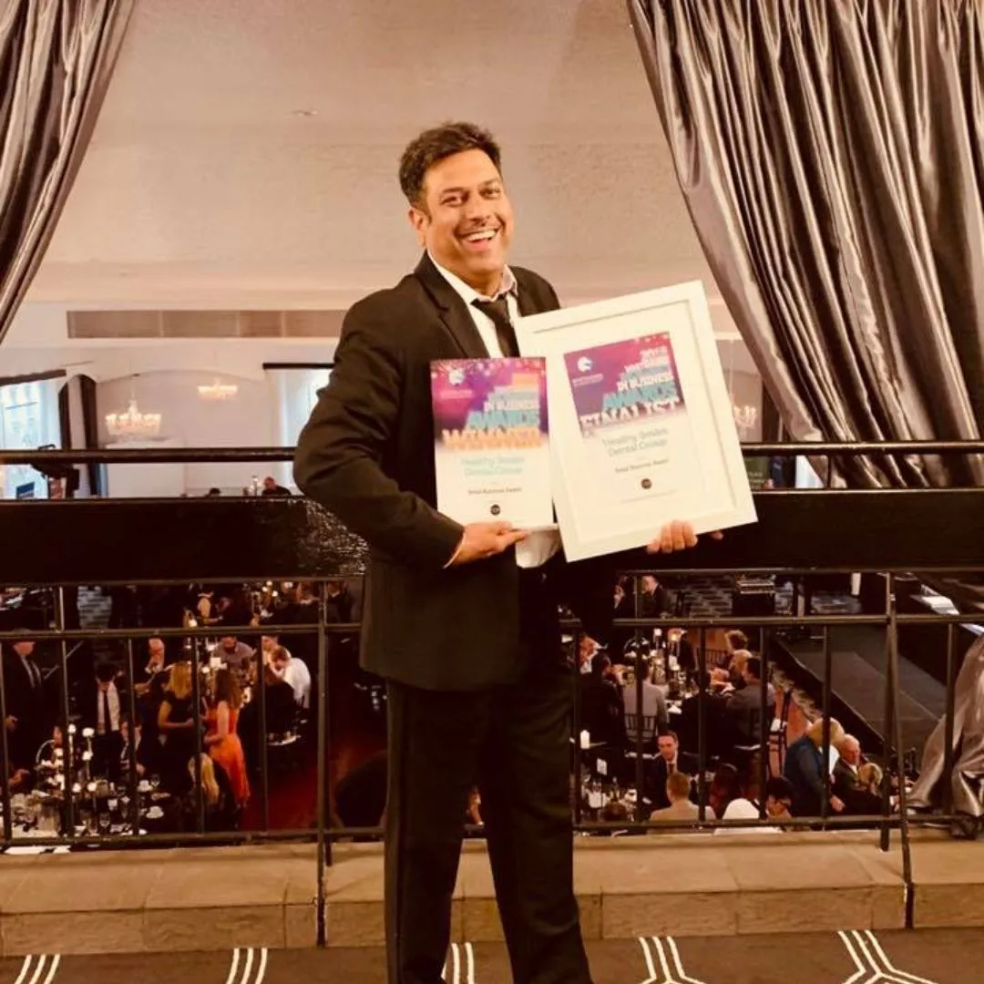 Fellowship of the International Academy of Dentofacial Aesthetics - 2024Ethnic Business Award (EBA – National Level) – honouring entrepreneurial success, innovation, and community impact as Founder & CEO of Healthy Smiles Dental Group