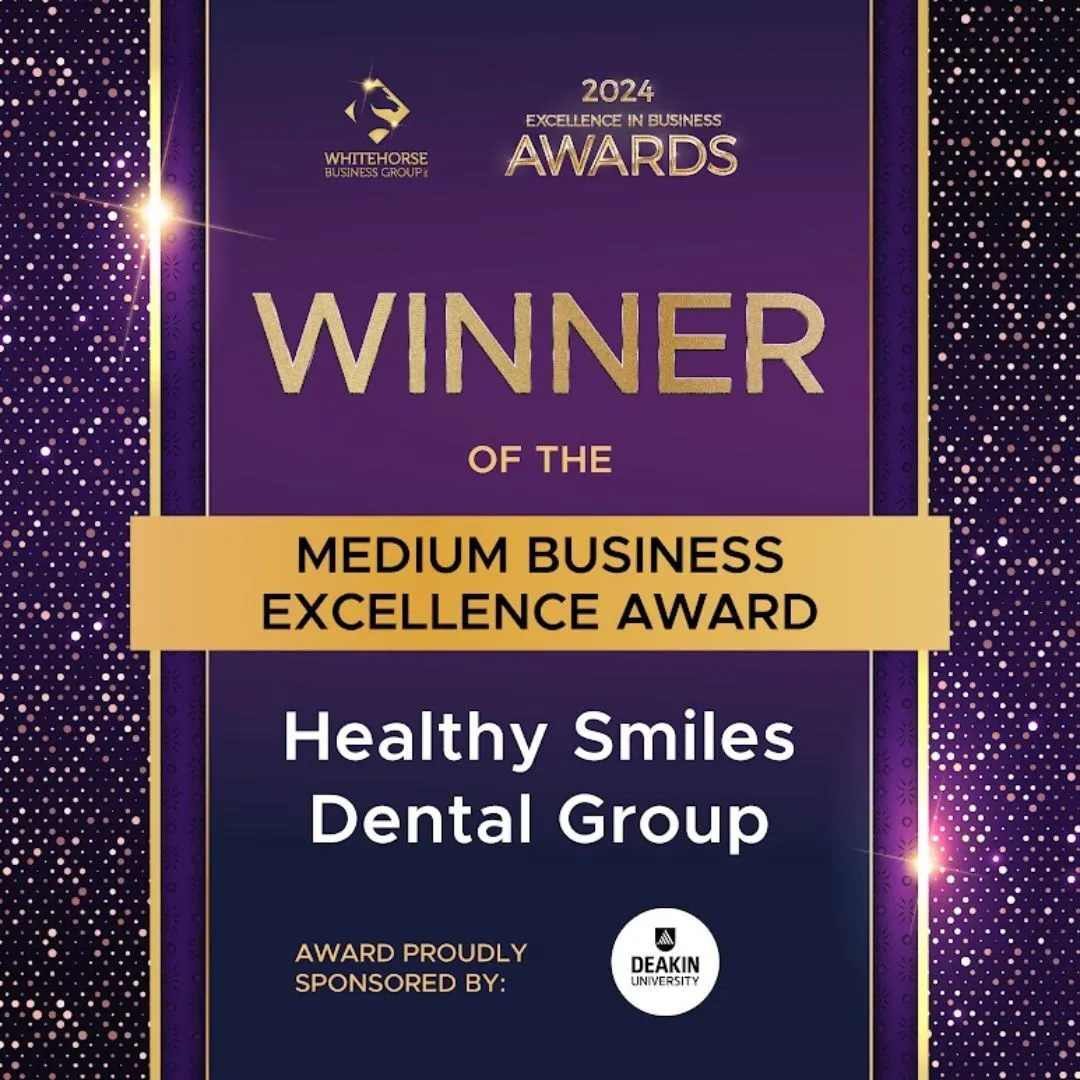 - Whitehorse Business Community Award (Medium-Sized Business Category) – recognising excellence in practice growth and leadership at Healthy Smiles Dental Group