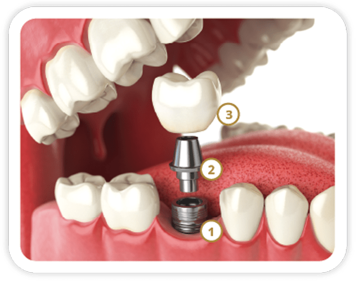 A dental implant is made up of three key parts that work together to look, feel, and function like a natural tooth. They are the most natural and long-lasting way to replace a missing tooth. The result looks, feels, and functions just like the tooth you lost.